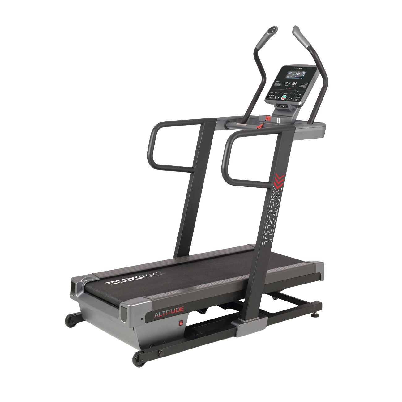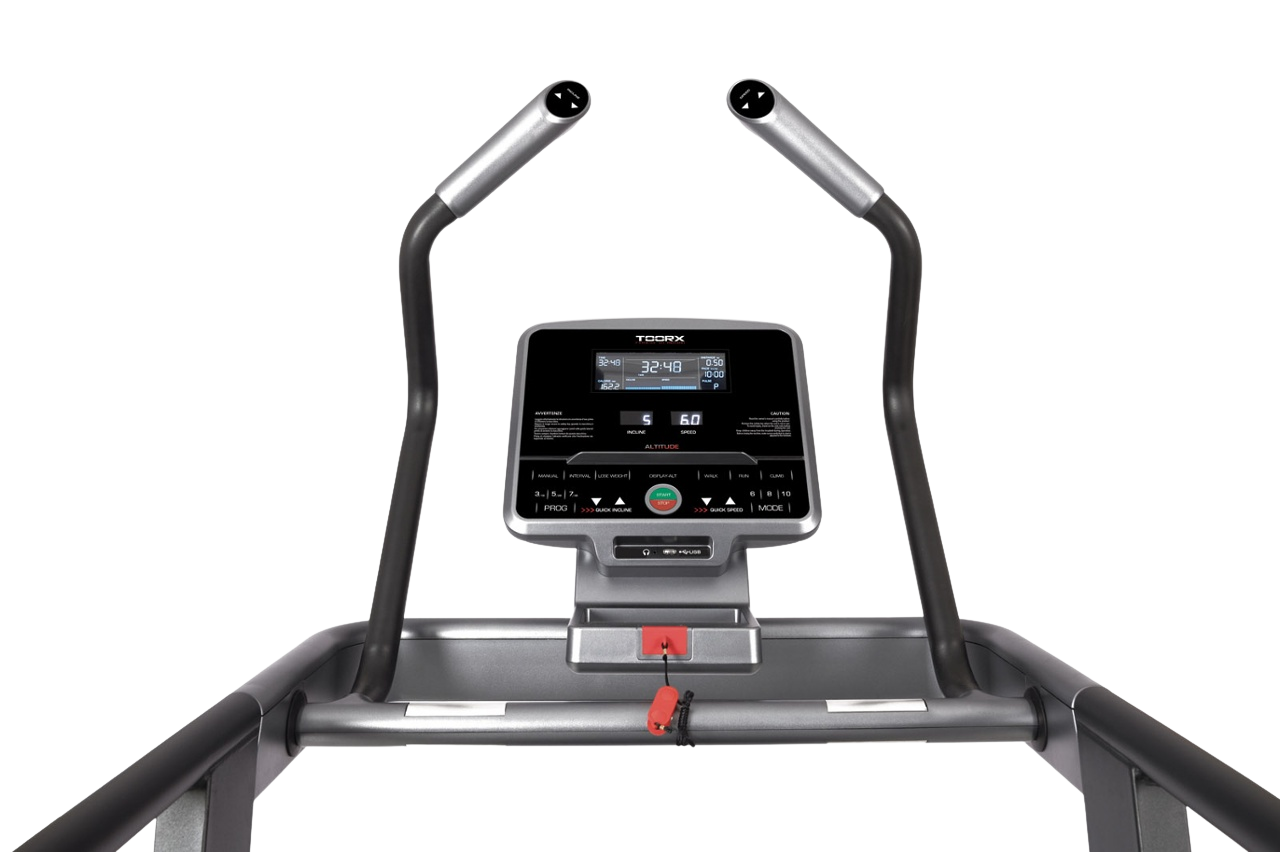 The powerful and versatile treadmill Toorx Altitude. It allows you to run (speeds from 0.8 to 18 km/h and inclines from -2% to +15%) and simulate hill climbs (speeds from 0.8 to 6 km/h and inclines from -2% to +40%). The product is therefore suitable for beginners and advanced trainers. In addition to all these capabilities, the device is also compatible with Kinomap and Zwift applications.
