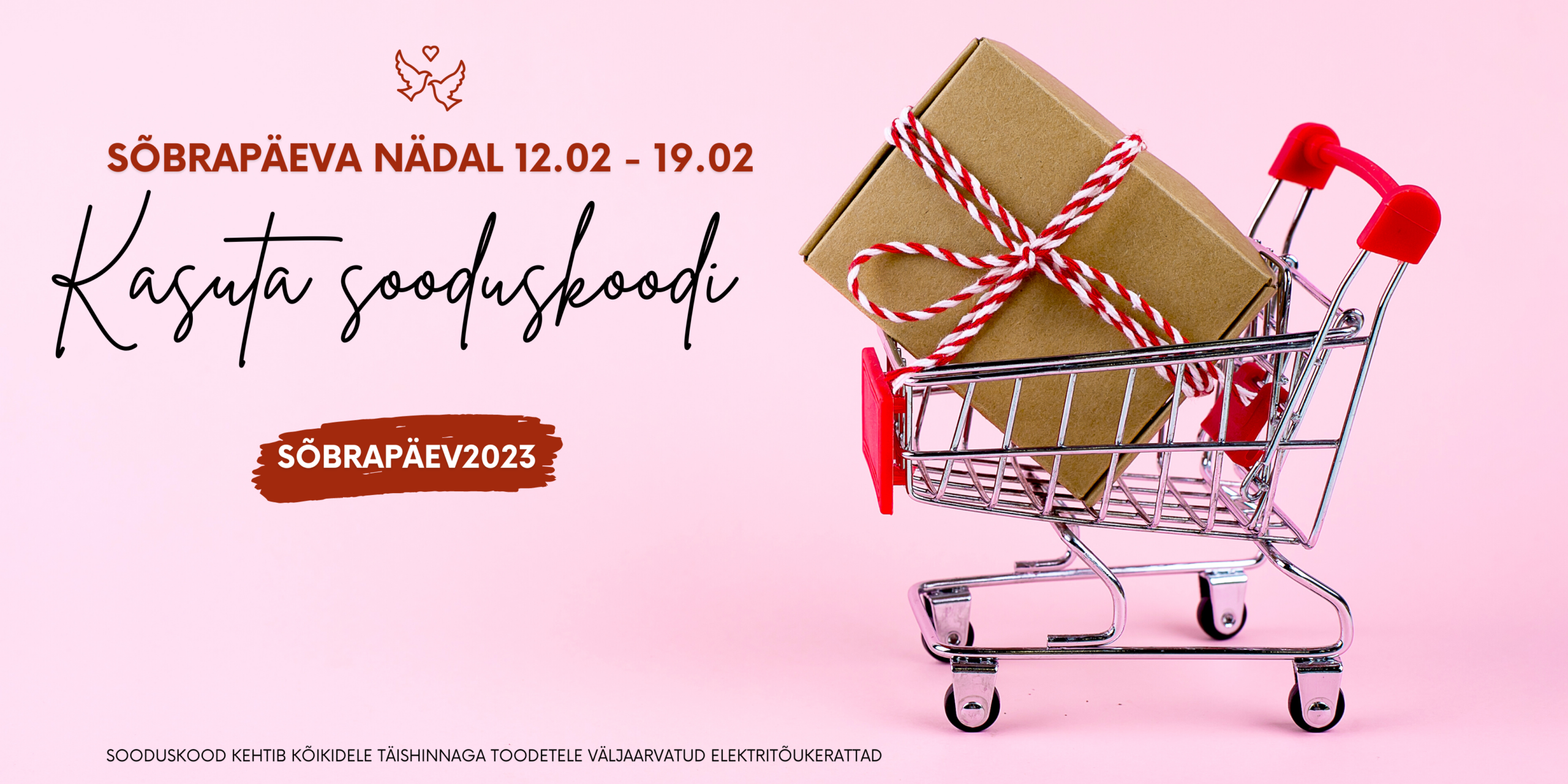 Sõbrapäeva nädalal on Velomarketi e-poes kõik täishinnaga tooted -20% allahindlusega. Allahindlus ei kehti elektritõukeratastele ja juba allahinnatud toodetele. -20% soodustuse saamiseks sisesta ostukorvis sooduskood “Sõbrapäev2023”